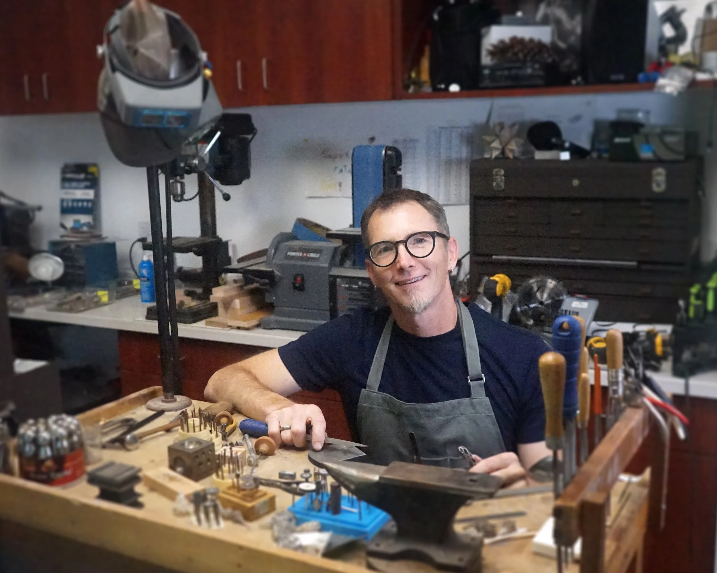 The studio is operated by Richard Elaver, a metalsmith, designer, and educator. All designs are developed and produced by him, with occasional help from a studio assistant.